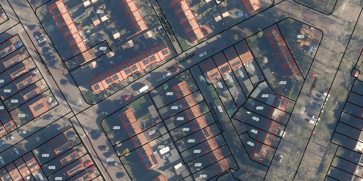 Roerdompstraat 9 is gelegen op kadastraal perceel BAA01M4330. Deze kadastrale aanduiding is uniek en wordt gebruikt door het Kadaster om eigendomsrechten en andere zakelijke rechten vast te leggen. Het perceel maakt onderdeel uit van de kadastrale gemeente Baarn.