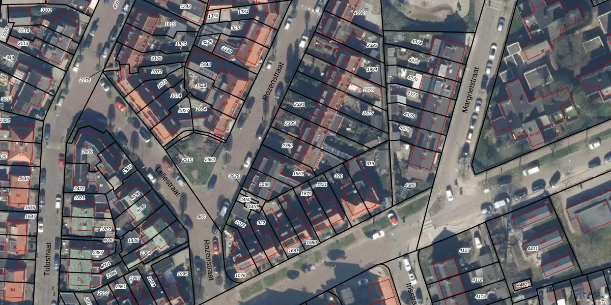 Gebruik de zoekbalk of klik op een perceel voor informatie over de adressen binnen dit perceel.