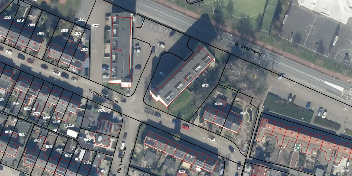 Het perceel waarop Schaepmanlaan 26 staat heeft een oppervlakte van 1343 m². Dit is een zeer groot perceel. De perceeloppervlakte wordt geregistreerd door het Kadaster. Gedetailleerde informatie over de maten van dit perceel kunt u vinden in het rapport Kadastrale kaart met maatvoering van Schaepmanlaan 26.