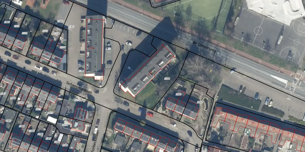 Het perceel waarop Schaepmanlaan 38 staat heeft een oppervlakte van 1343 m². Dit is een zeer groot perceel. De perceeloppervlakte wordt geregistreerd door het Kadaster. Gedetailleerde informatie over de maten van dit perceel kunt u vinden in het rapport Kadastrale kaart met maatvoering van Schaepmanlaan 38.