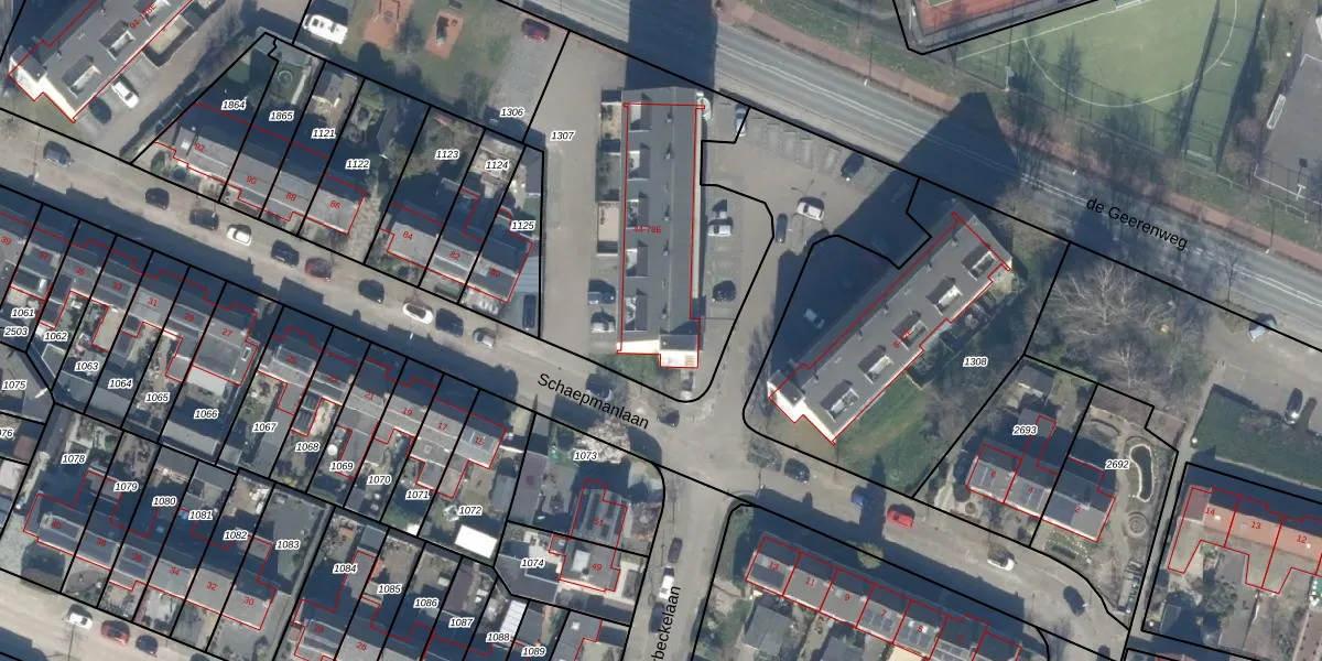 Het perceel waarop Schaepmanlaan 58 staat heeft een oppervlakte van 1417 m². Dit is een zeer groot perceel. De perceeloppervlakte wordt geregistreerd door het Kadaster. Gedetailleerde informatie over de maten van dit perceel kunt u vinden in het rapport Kadastrale kaart met maatvoering van Schaepmanlaan 58.