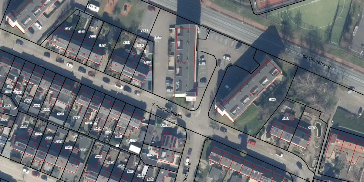 Het perceel waarop Schaepmanlaan 60 staat heeft een oppervlakte van 1417 m². Dit is een zeer groot perceel. De perceeloppervlakte wordt geregistreerd door het Kadaster. Gedetailleerde informatie over de maten van dit perceel kunt u vinden in het rapport Kadastrale kaart met maatvoering van Schaepmanlaan 60.