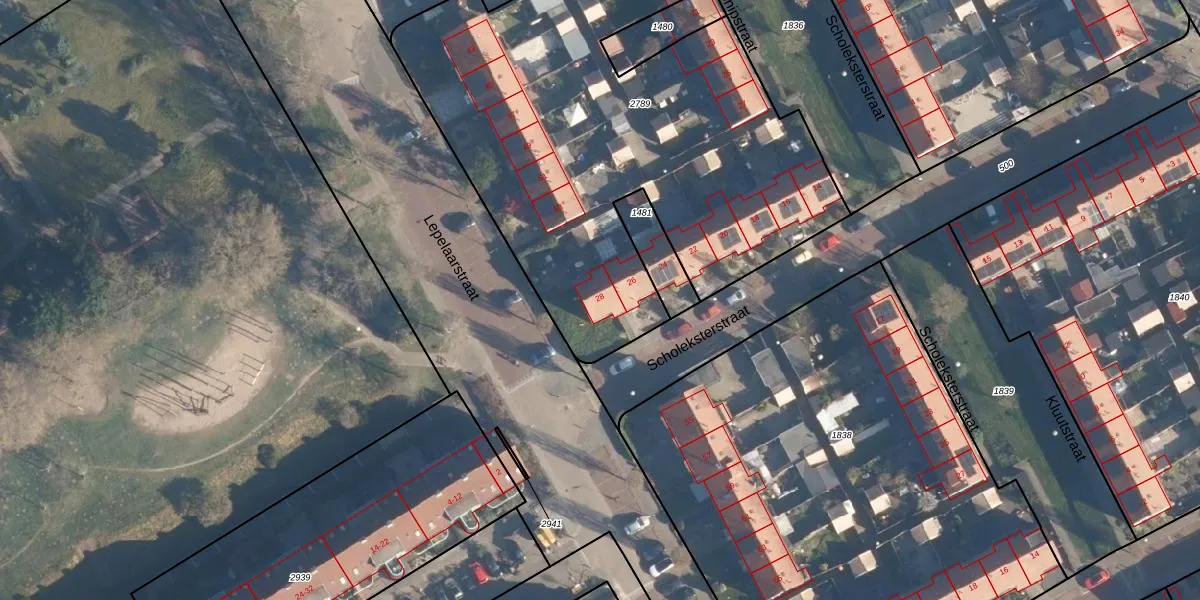 Het perceel waarop Scholeksterstraat 28 staat heeft een oppervlakte van 2907 m². Dit is een zeer groot perceel. De perceeloppervlakte wordt geregistreerd door het Kadaster. Gedetailleerde informatie over de maten van dit perceel kunt u vinden in het rapport Kadastrale kaart met maatvoering van Scholeksterstraat 28.