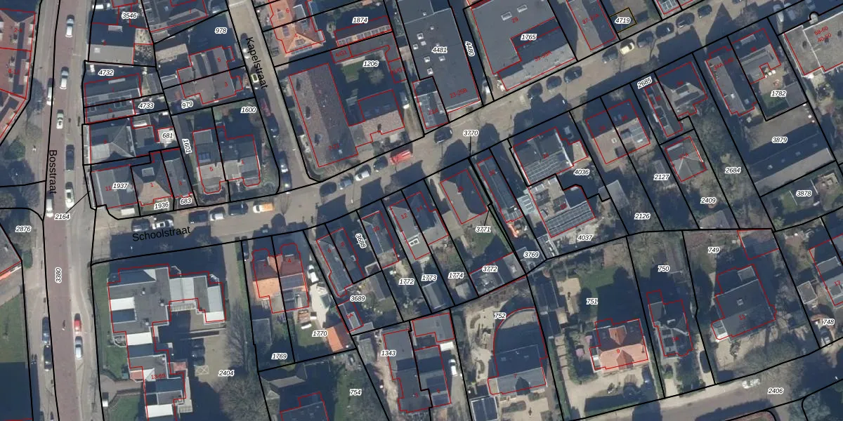 Gebruik de zoekbalk of klik op een perceel voor informatie over de adressen binnen dit perceel.