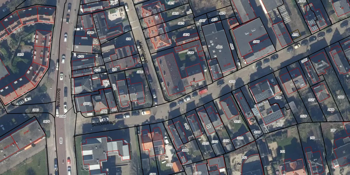 Het perceel waarop Schoolstraat 15 staat heeft een oppervlakte van 804 m². Dit is een groot perceel. De perceeloppervlakte wordt geregistreerd door het Kadaster. Gedetailleerde informatie over de maten van dit perceel kunt u vinden in het rapport Kadastrale kaart met maatvoering van Schoolstraat 15.