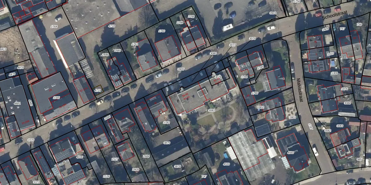 Schoolstraat 42 is gelegen op kadastraal perceel BAA01M3081. Deze kadastrale aanduiding is uniek en wordt gebruikt door het Kadaster om eigendomsrechten en andere zakelijke rechten vast te leggen. Het perceel maakt onderdeel uit van de kadastrale gemeente Baarn.