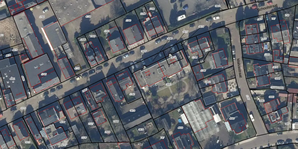 Schoolstraat 48 is gelegen op kadastraal perceel BAA01M3081. Deze kadastrale aanduiding is uniek en wordt gebruikt door het Kadaster om eigendomsrechten en andere zakelijke rechten vast te leggen. Het perceel maakt onderdeel uit van de kadastrale gemeente Baarn.