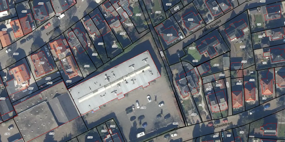 Schoolstraat 53-C is gelegen op kadastraal perceel BAA01M1758. Deze kadastrale aanduiding is uniek en wordt gebruikt door het Kadaster om eigendomsrechten en andere zakelijke rechten vast te leggen. Het perceel maakt onderdeel uit van de kadastrale gemeente Baarn.