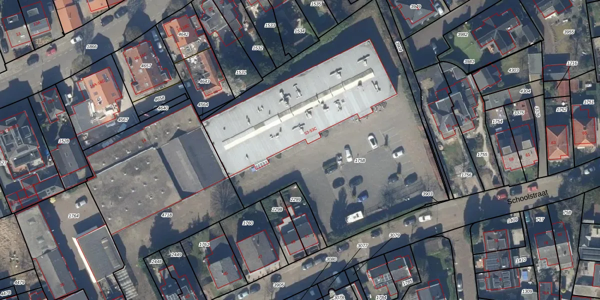 Het perceel waarop Schoolstraat 53-0003 staat heeft een oppervlakte van 3696 m². Dit is een zeer groot perceel. De perceeloppervlakte wordt geregistreerd door het Kadaster. Gedetailleerde informatie over de maten van dit perceel kunt u vinden in het rapport Kadastrale kaart met maatvoering van Schoolstraat 53-0003.