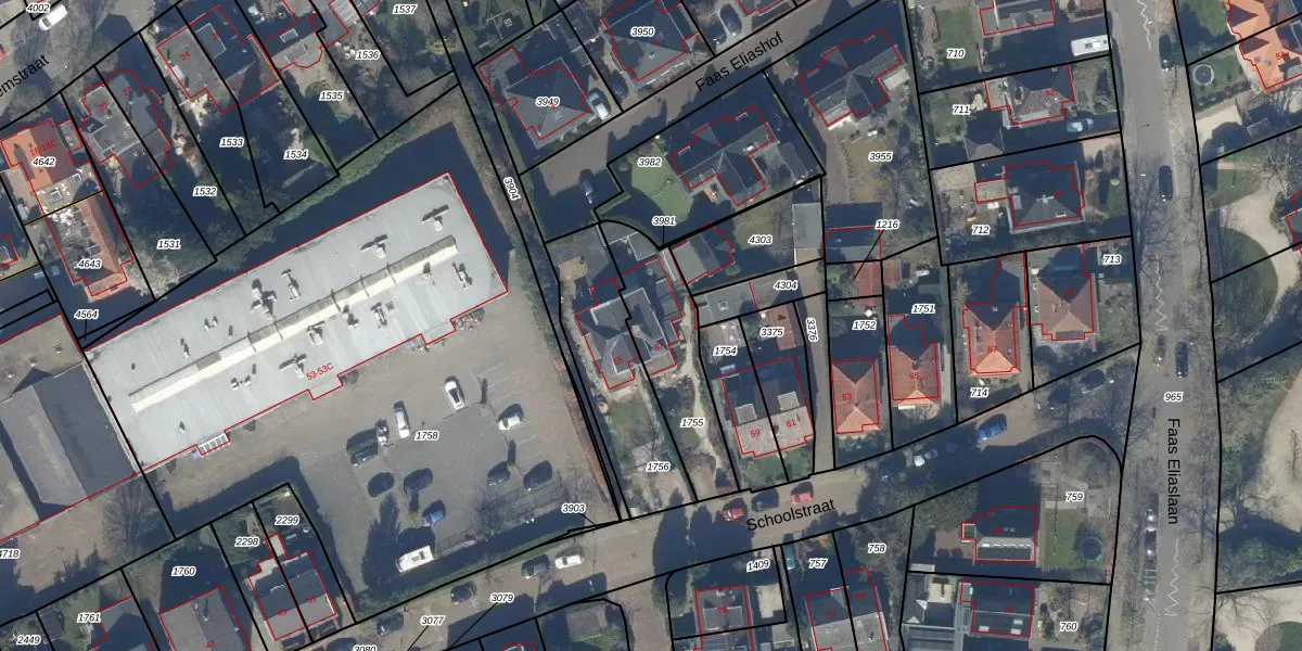 Het perceel waarop Schoolstraat 57 staat heeft een oppervlakte van 382 m². Dit is een groot perceel. De perceeloppervlakte wordt geregistreerd door het Kadaster. Gedetailleerde informatie over de maten van dit perceel kunt u vinden in het rapport Kadastrale kaart met maatvoering van Schoolstraat 57.