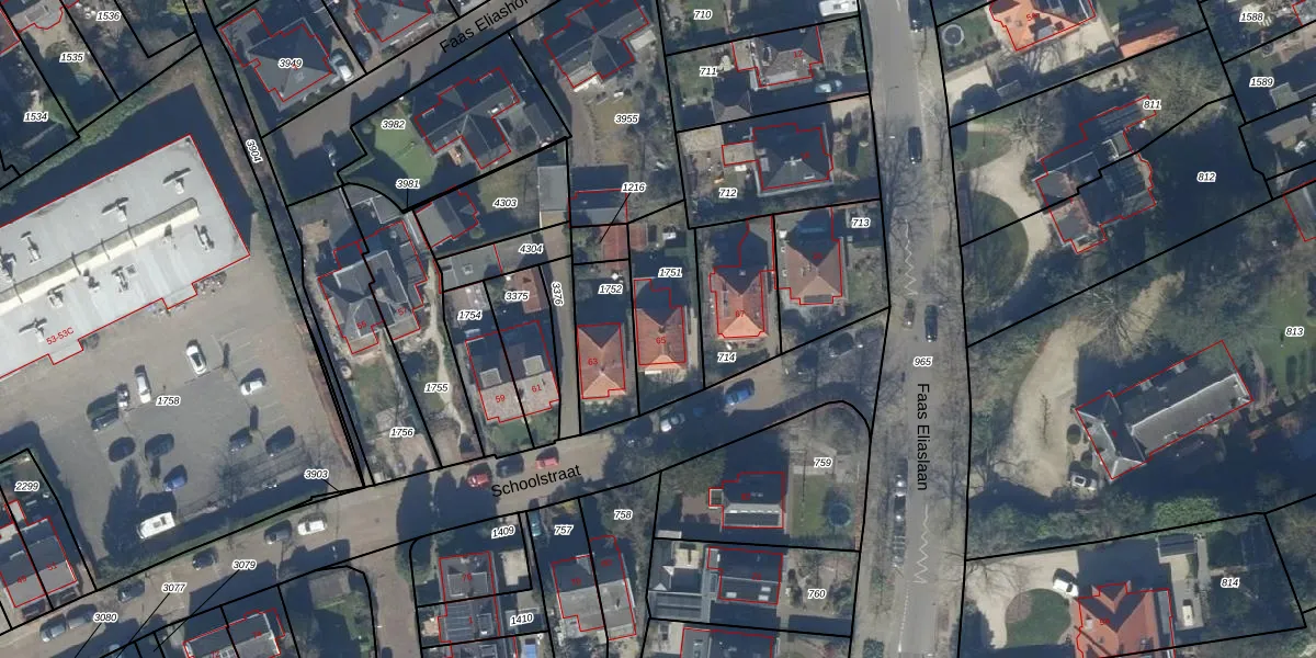 Gebruik de zoekbalk of klik op een perceel voor informatie over de adressen binnen dit perceel.
