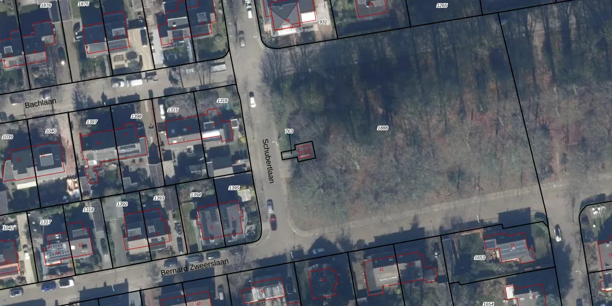 Schubertlaan 2-T1 is gelegen op kadastraal perceel BAA01H763. Deze kadastrale aanduiding is uniek en wordt gebruikt door het Kadaster om eigendomsrechten en andere zakelijke rechten vast te leggen. Het perceel maakt onderdeel uit van de kadastrale gemeente Baarn.