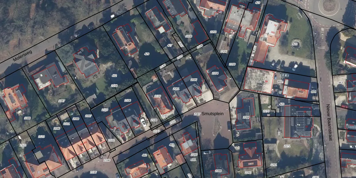 Smutsplein 11 is gelegen op kadastraal perceel BAA01K2091. Deze kadastrale aanduiding is uniek en wordt gebruikt door het Kadaster om eigendomsrechten en andere zakelijke rechten vast te leggen. Het perceel maakt onderdeel uit van de kadastrale gemeente Baarn.