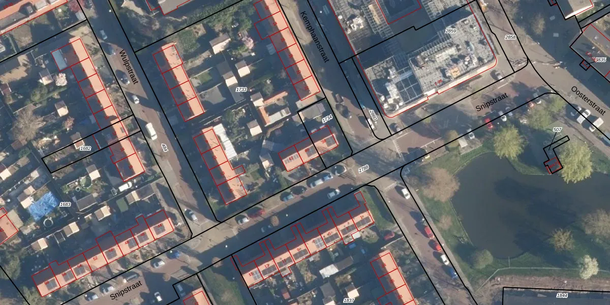 Het perceel waarop Snipstraat 40 staat heeft een oppervlakte van 2878 m². Dit is een zeer groot perceel. De perceeloppervlakte wordt geregistreerd door het Kadaster. Gedetailleerde informatie over de maten van dit perceel kunt u vinden in het rapport Kadastrale kaart met maatvoering van Snipstraat 40.