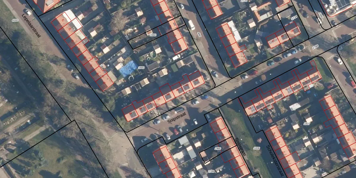 Het perceel waarop Snipstraat 48 staat heeft een oppervlakte van 4992 m². Dit is een zeer groot perceel. De perceeloppervlakte wordt geregistreerd door het Kadaster. Gedetailleerde informatie over de maten van dit perceel kunt u vinden in het rapport Kadastrale kaart met maatvoering van Snipstraat 48.