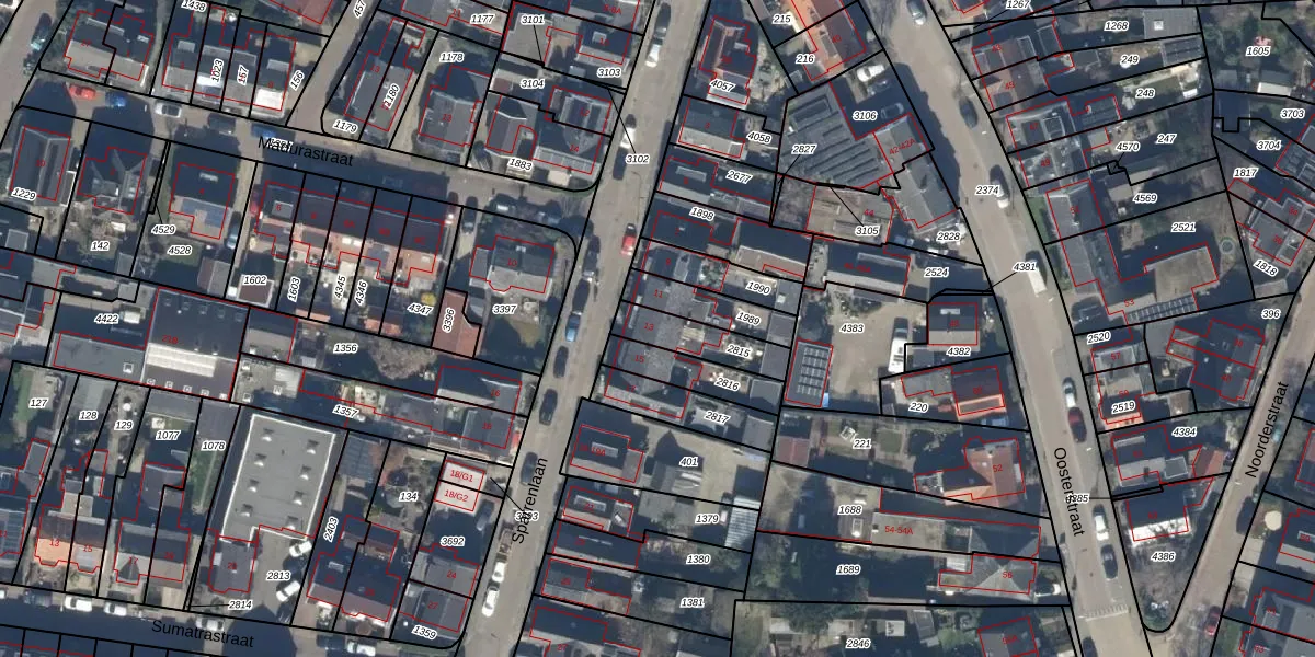 Gebruik de zoekbalk of klik op een perceel voor informatie over de adressen binnen dit perceel.