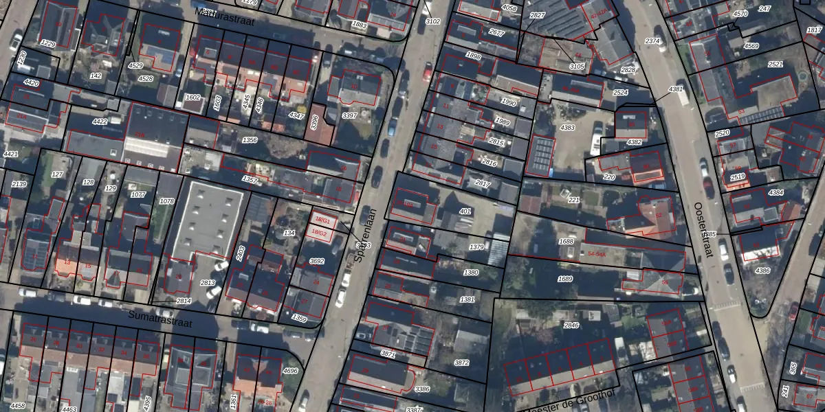 Het perceel waarop Sparrenlaan 19-A staat heeft een oppervlakte van 319 m². Dit is een groot perceel. De perceeloppervlakte wordt geregistreerd door het Kadaster. Gedetailleerde informatie over de maten van dit perceel kunt u vinden in het rapport Kadastrale kaart met maatvoering van Sparrenlaan 19-A.