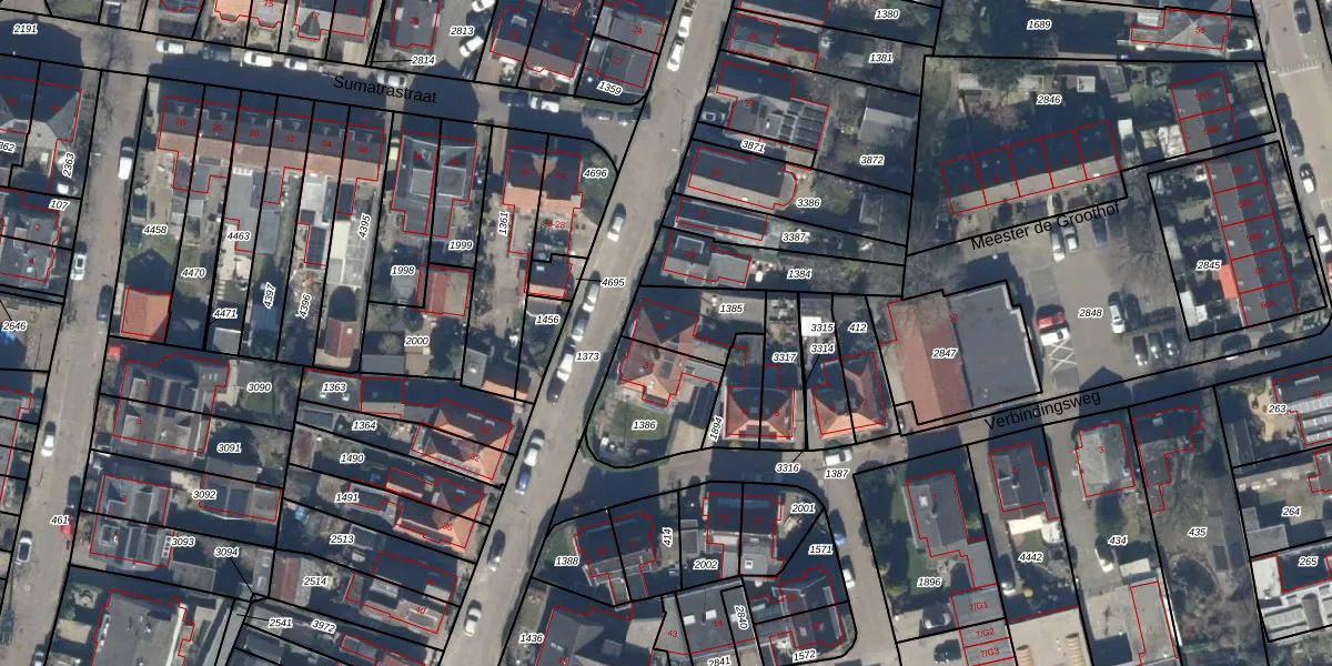 Gebruik de zoekbalk of klik op een perceel voor informatie over de adressen binnen dit perceel.