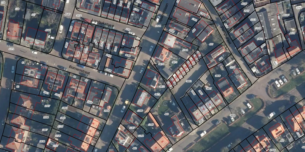 Gebruik de zoekbalk of klik op een perceel voor informatie over de adressen binnen dit perceel.