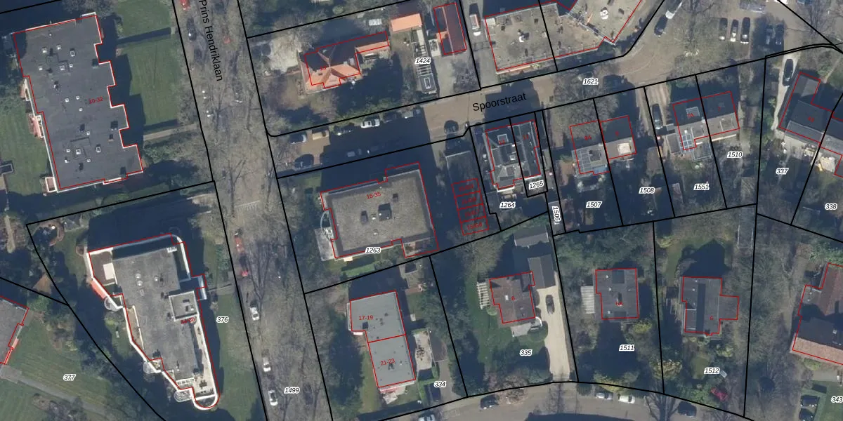 Het perceel waarop Spoorstraat 15-G4 staat heeft een oppervlakte van 1255 m². Dit is een zeer groot perceel. De perceeloppervlakte wordt geregistreerd door het Kadaster. Gedetailleerde informatie over de maten van dit perceel kunt u vinden in het rapport Kadastrale kaart met maatvoering van Spoorstraat 15-G4.