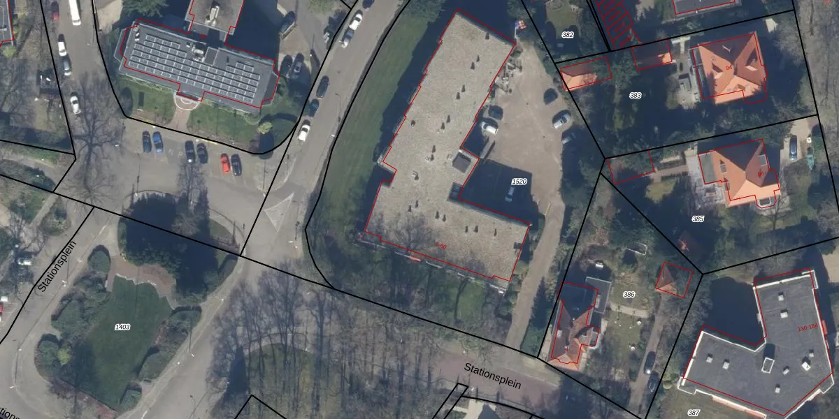 Het perceel waarop Stationsplein 54 staat heeft een oppervlakte van 4430 m². Dit is een zeer groot perceel. De perceeloppervlakte wordt geregistreerd door het Kadaster. Gedetailleerde informatie over de maten van dit perceel kunt u vinden in het rapport Kadastrale kaart met maatvoering van Stationsplein 54.
