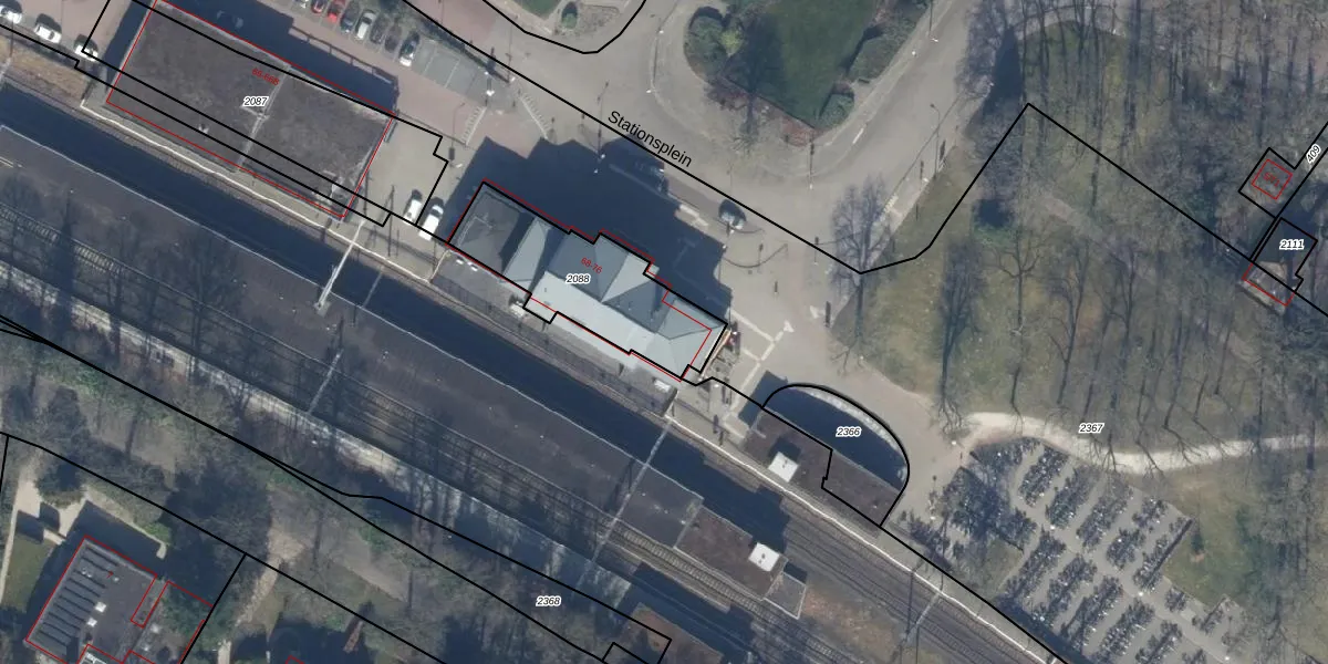 Het perceel waarop Stationsplein 76 staat heeft een oppervlakte van 490 m². Dit is een groot perceel. De perceeloppervlakte wordt geregistreerd door het Kadaster. Gedetailleerde informatie over de maten van dit perceel kunt u vinden in het rapport Kadastrale kaart met maatvoering van Stationsplein 76.