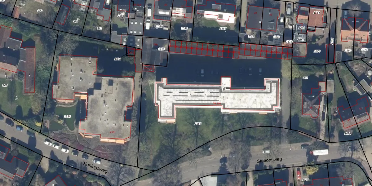 Het perceel waarop Stationsweg 104 staat heeft een oppervlakte van 4178 m². Dit is een zeer groot perceel. De perceeloppervlakte wordt geregistreerd door het Kadaster. Gedetailleerde informatie over de maten van dit perceel kunt u vinden in het rapport Kadastrale kaart met maatvoering van Stationsweg 104.