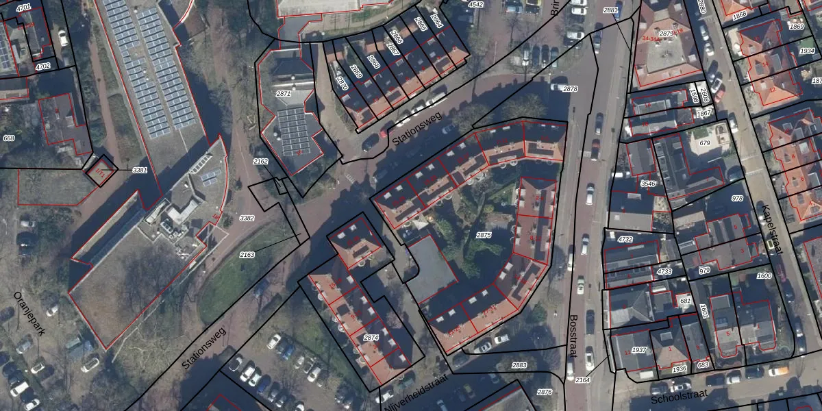 Het perceel waarop Stationsweg 27 staat heeft een oppervlakte van 1721 m². Dit is een zeer groot perceel. De perceeloppervlakte wordt geregistreerd door het Kadaster. Gedetailleerde informatie over de maten van dit perceel kunt u vinden in het rapport Kadastrale kaart met maatvoering van Stationsweg 27.