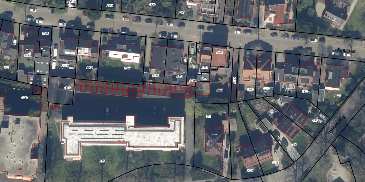 Het perceel waarop Stationsweg 38-G3 staat heeft een oppervlakte van 4178 m². Dit is een zeer groot perceel. De perceeloppervlakte wordt geregistreerd door het Kadaster. Gedetailleerde informatie over de maten van dit perceel kunt u vinden in het rapport Kadastrale kaart met maatvoering van Stationsweg 38-G3.