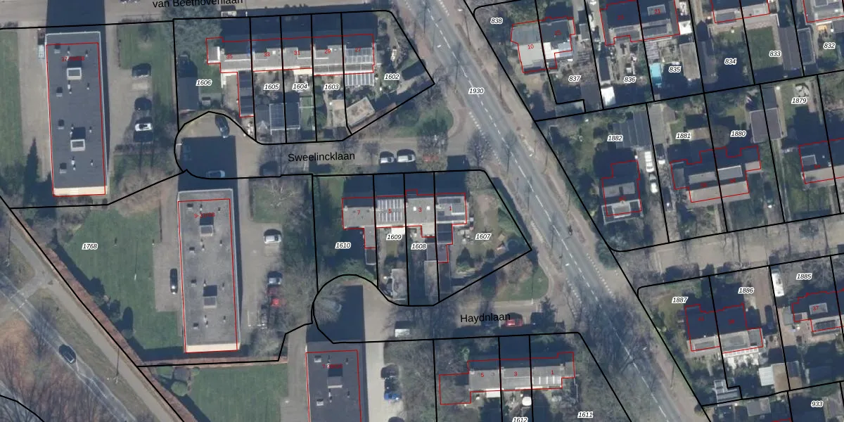 Sweelincklaan 3 is gelegen op kadastraal perceel BAA01H1608. Deze kadastrale aanduiding is uniek en wordt gebruikt door het Kadaster om eigendomsrechten en andere zakelijke rechten vast te leggen. Het perceel maakt onderdeel uit van de kadastrale gemeente Baarn.
