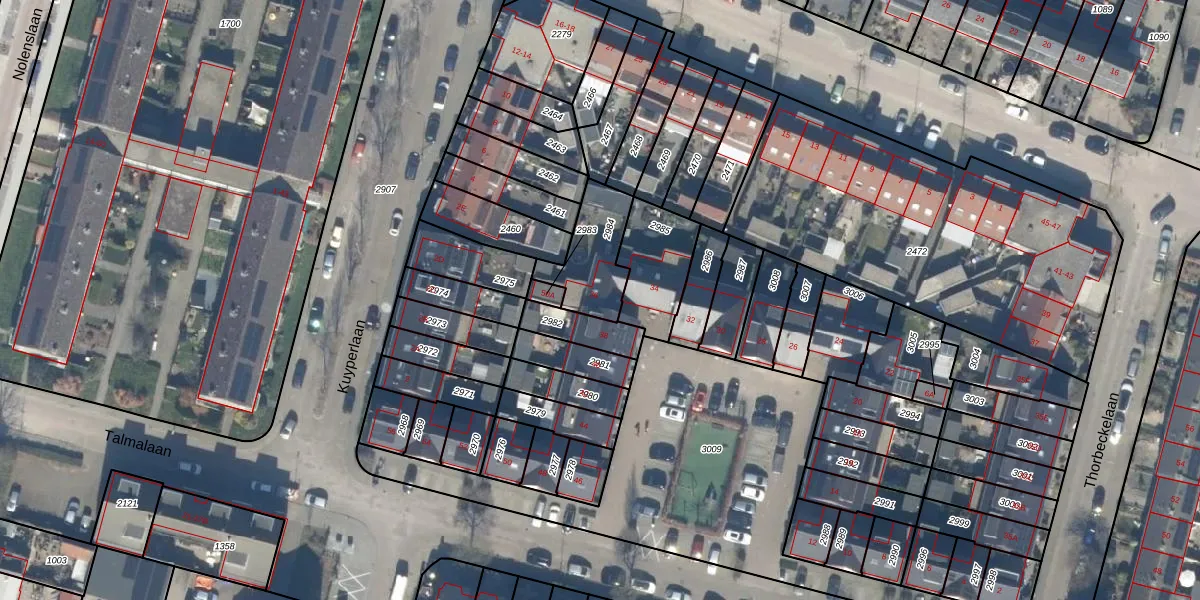 Gebruik de zoekbalk of klik op een perceel voor informatie over de adressen binnen dit perceel.