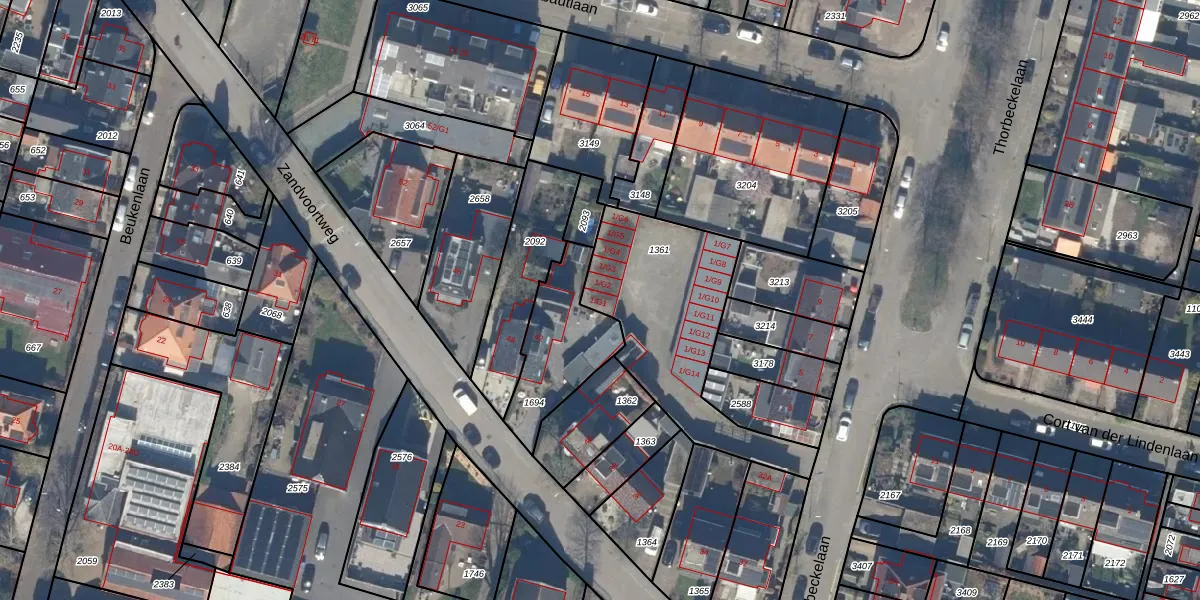 Het perceel waarop Thorbeckelaan 1-G1 staat heeft een oppervlakte van 696 m². Dit is een groot perceel. De perceeloppervlakte wordt geregistreerd door het Kadaster. Gedetailleerde informatie over de maten van dit perceel kunt u vinden in het rapport Kadastrale kaart met maatvoering van Thorbeckelaan 1-G1.
