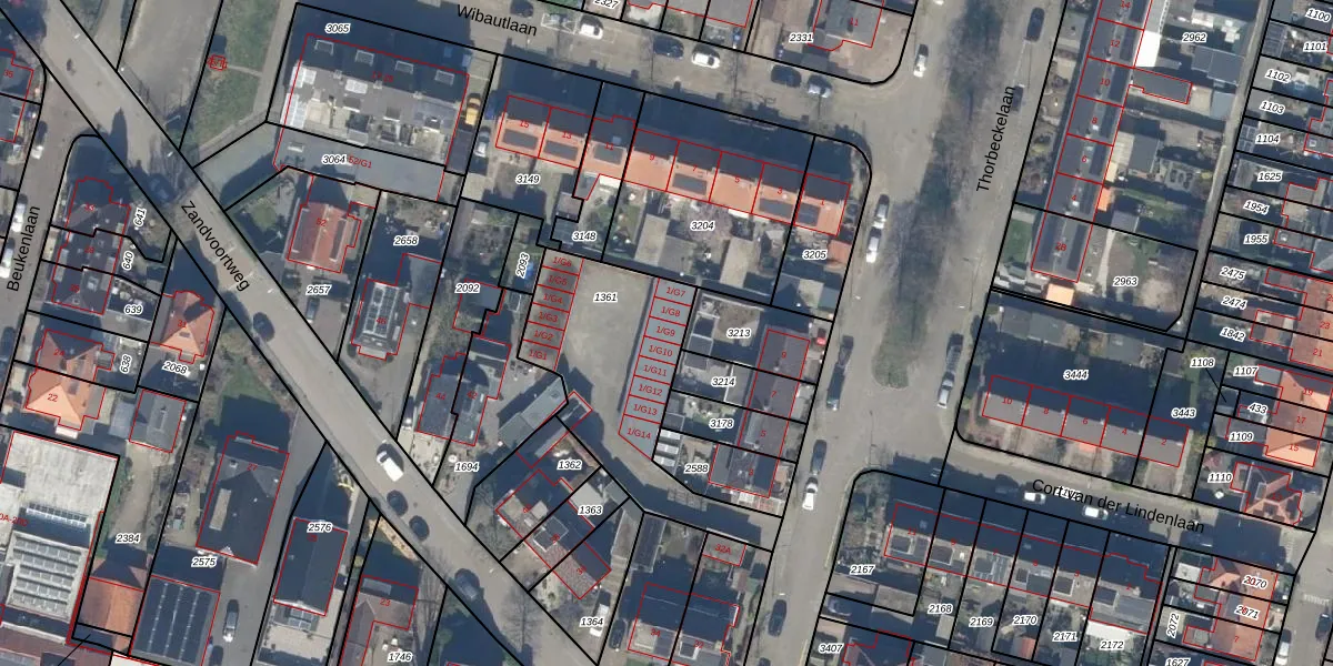 Het perceel waarop Thorbeckelaan 1-G9 staat heeft een oppervlakte van 696 m². Dit is een groot perceel. De perceeloppervlakte wordt geregistreerd door het Kadaster. Gedetailleerde informatie over de maten van dit perceel kunt u vinden in het rapport Kadastrale kaart met maatvoering van Thorbeckelaan 1-G9.