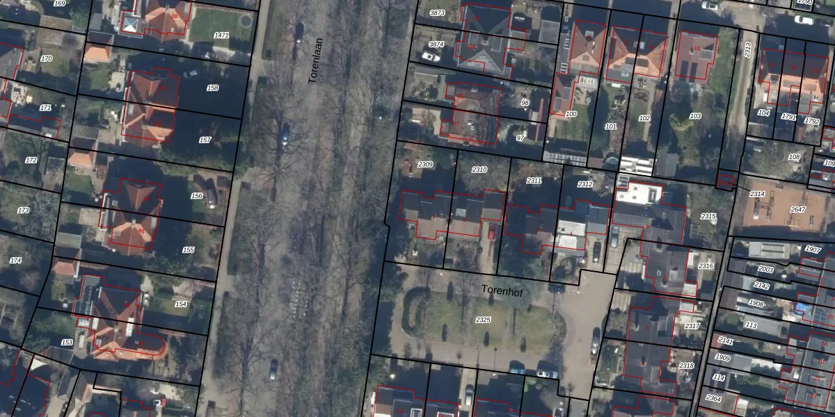 Het perceel waarop Torenhof 1 staat heeft een oppervlakte van 433 m². Dit is een groot perceel. De perceeloppervlakte wordt geregistreerd door het Kadaster. Gedetailleerde informatie over de maten van dit perceel kunt u vinden in het rapport Kadastrale kaart met maatvoering van Torenhof 1.