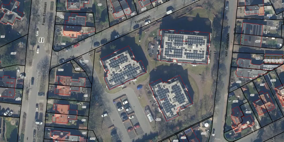 Het perceel waarop Tromplaan 121 staat heeft een oppervlakte van 7558 m². Dit is een zeer groot perceel. De perceeloppervlakte wordt geregistreerd door het Kadaster. Gedetailleerde informatie over de maten van dit perceel kunt u vinden in het rapport Kadastrale kaart met maatvoering van Tromplaan 121.