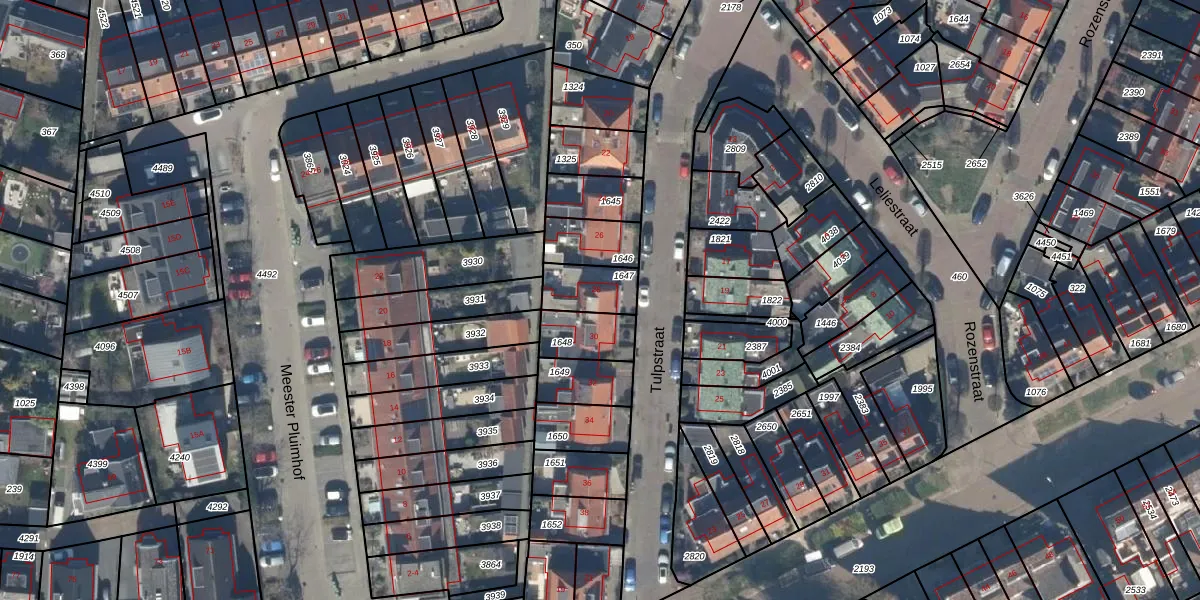 Gebruik de zoekbalk of klik op een perceel voor informatie over de adressen binnen dit perceel.