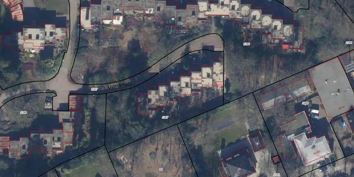 Uytenbosch 10 is gelegen op kadastraal perceel BAA01K1287. Deze kadastrale aanduiding is uniek en wordt gebruikt door het Kadaster om eigendomsrechten en andere zakelijke rechten vast te leggen. Het perceel maakt onderdeel uit van de kadastrale gemeente Baarn.