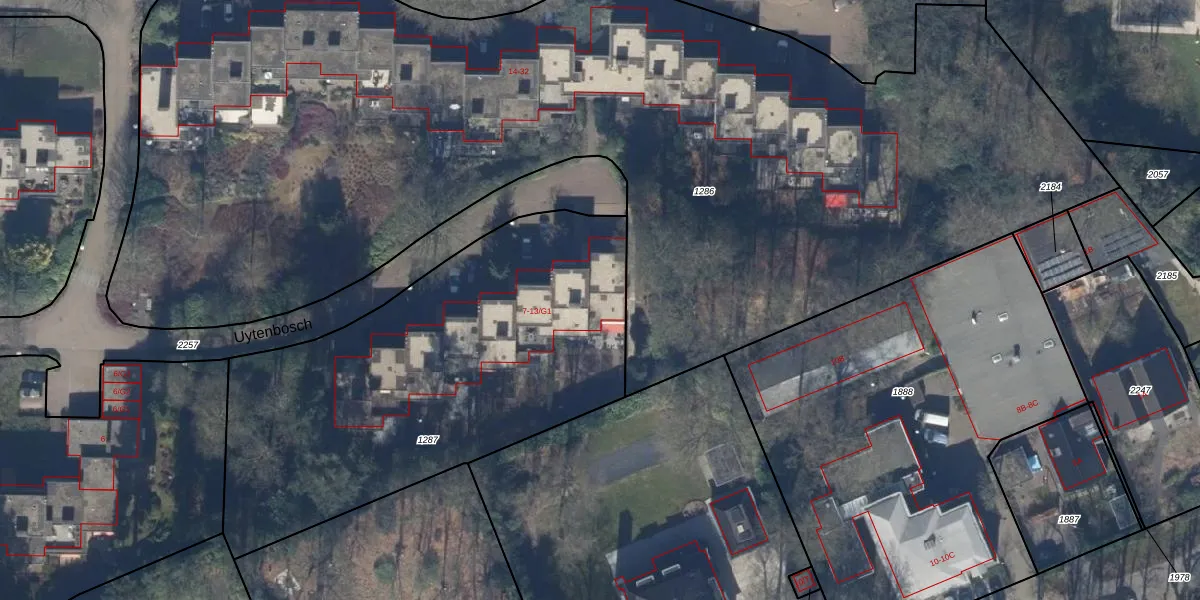 Uytenbosch 13 is gelegen op kadastraal perceel BAA01K1287. Deze kadastrale aanduiding is uniek en wordt gebruikt door het Kadaster om eigendomsrechten en andere zakelijke rechten vast te leggen. Het perceel maakt onderdeel uit van de kadastrale gemeente Baarn.