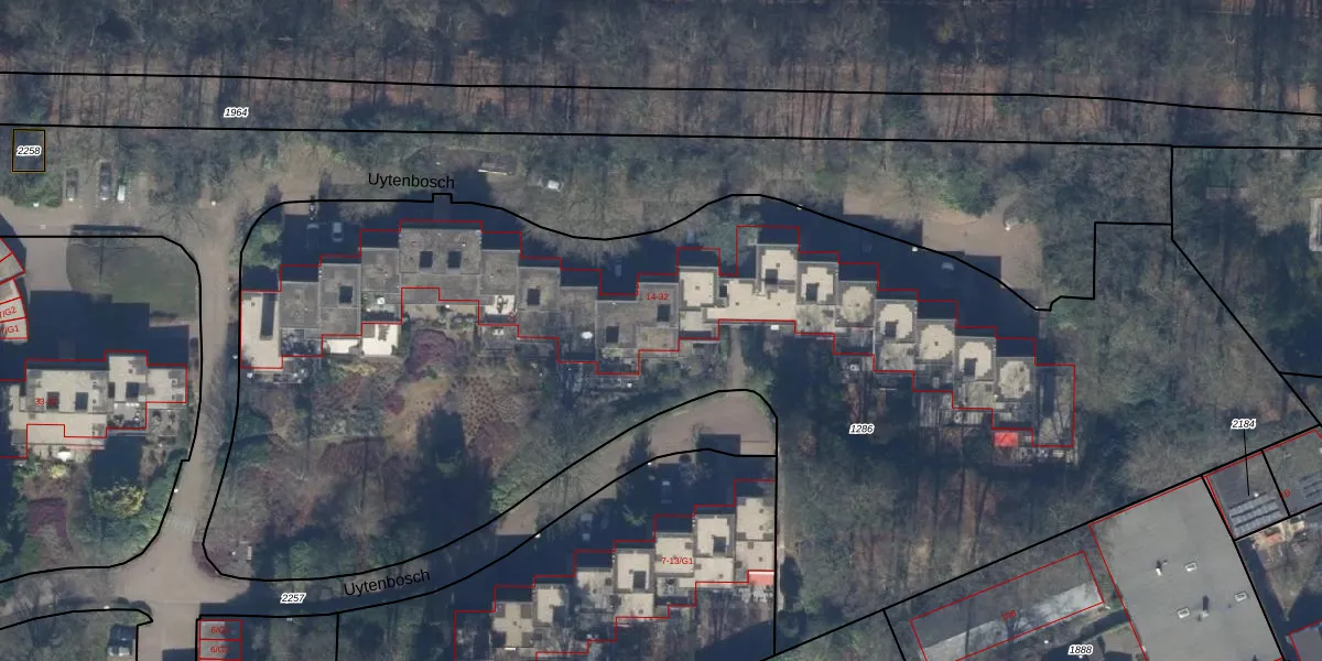 Het perceel waarop Uytenbosch 24 staat heeft een oppervlakte van 6895 m². Dit is een zeer groot perceel. De perceeloppervlakte wordt geregistreerd door het Kadaster. Gedetailleerde informatie over de maten van dit perceel kunt u vinden in het rapport Kadastrale kaart met maatvoering van Uytenbosch 24.