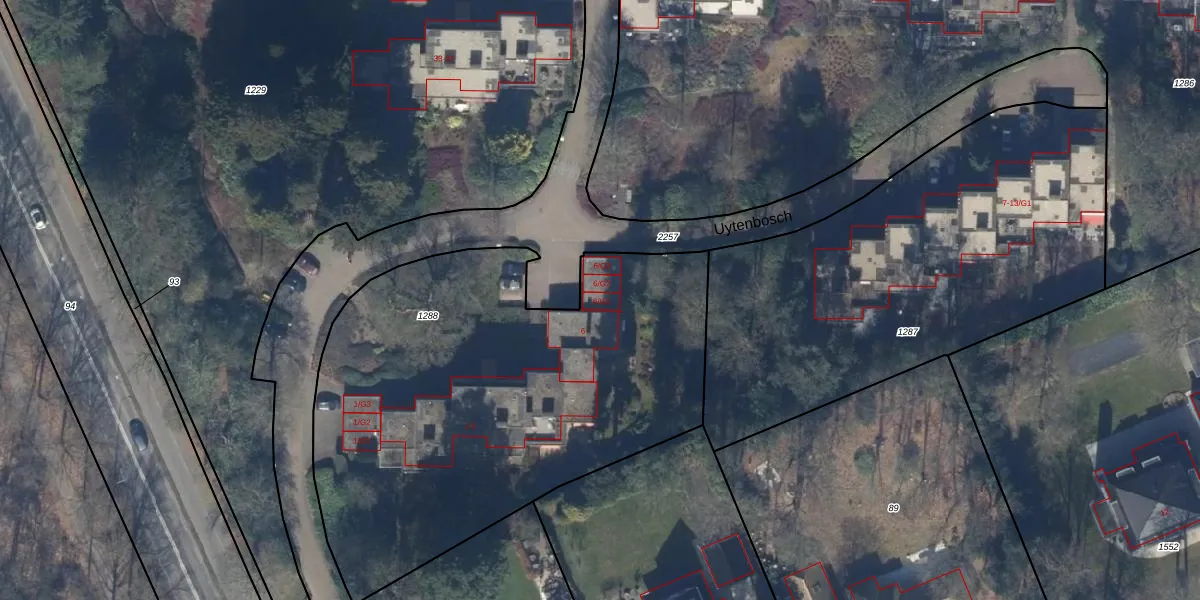 Uytenbosch 6-G1 is gelegen op kadastraal perceel BAA01K1288. Deze kadastrale aanduiding is uniek en wordt gebruikt door het Kadaster om eigendomsrechten en andere zakelijke rechten vast te leggen. Het perceel maakt onderdeel uit van de kadastrale gemeente Baarn.