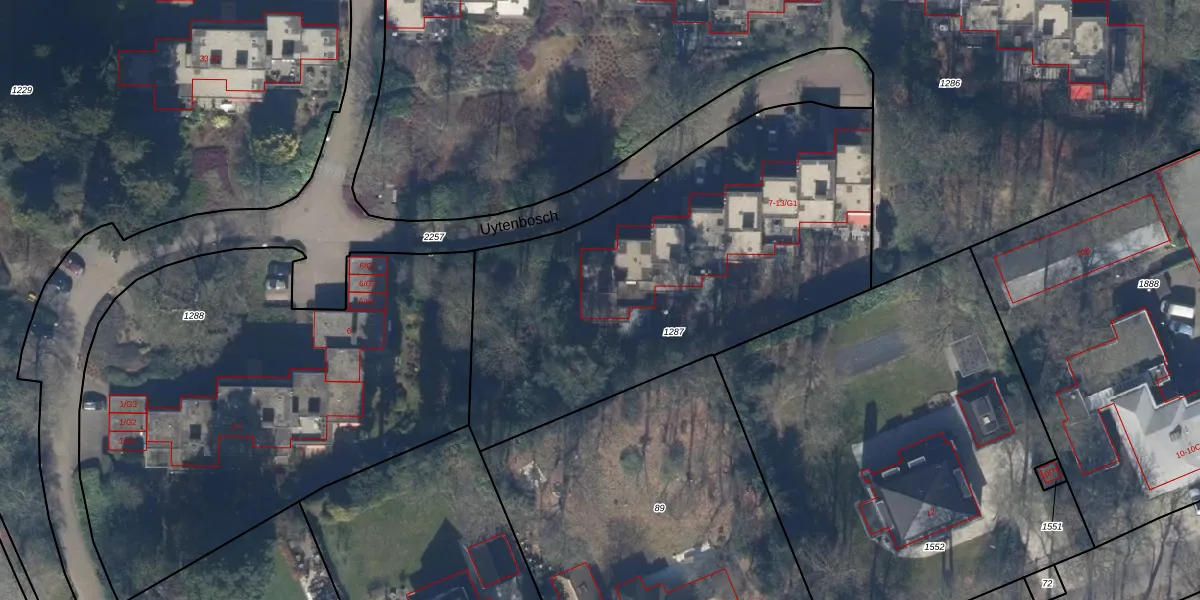 Uytenbosch 7 is gelegen op kadastraal perceel BAA01K1287. Deze kadastrale aanduiding is uniek en wordt gebruikt door het Kadaster om eigendomsrechten en andere zakelijke rechten vast te leggen. Het perceel maakt onderdeel uit van de kadastrale gemeente Baarn.