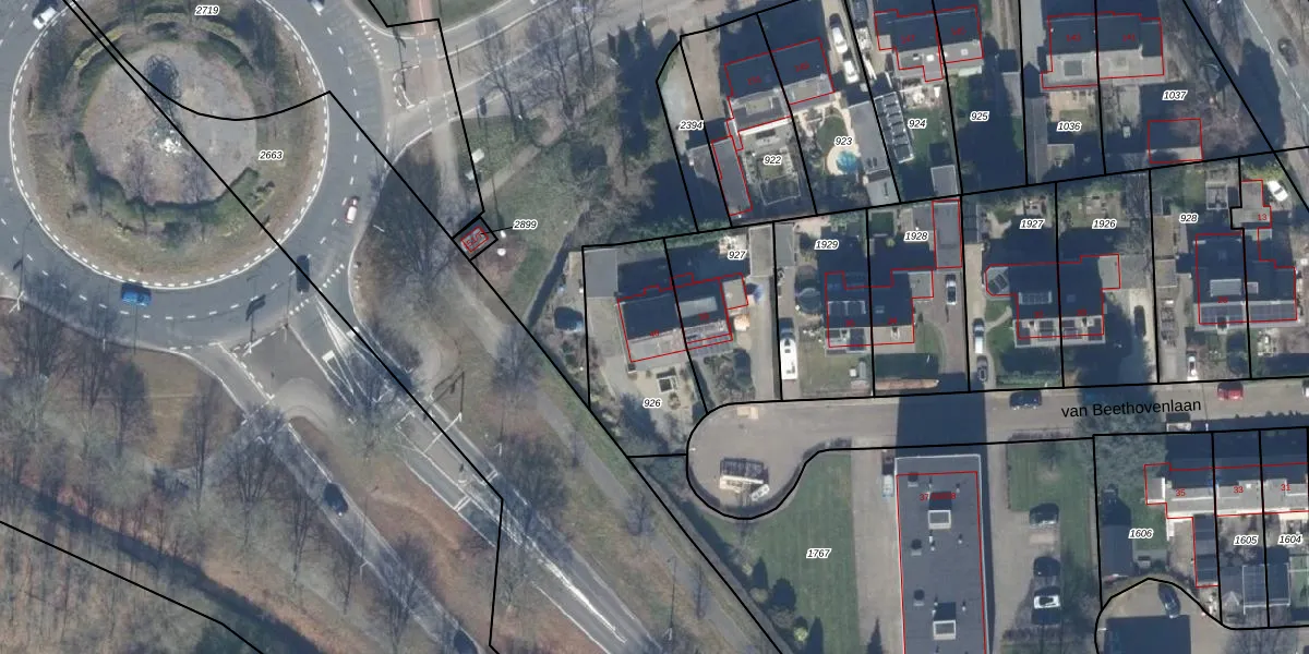 Het perceel waarop van Beethovenlaan 40 staat heeft een oppervlakte van 470 m². Dit is een groot perceel. De perceeloppervlakte wordt geregistreerd door het Kadaster. Gedetailleerde informatie over de maten van dit perceel kunt u vinden in het rapport Kadastrale kaart met maatvoering van van Beethovenlaan 40.
