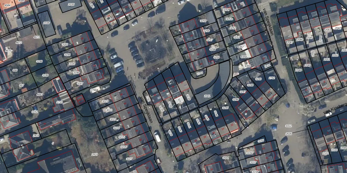 van Speijklaan 39 is gelegen op kadastraal perceel BAA01M3237. Deze kadastrale aanduiding is uniek en wordt gebruikt door het Kadaster om eigendomsrechten en andere zakelijke rechten vast te leggen. Het perceel maakt onderdeel uit van de kadastrale gemeente Baarn.