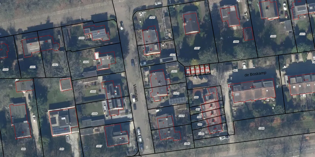 Gebruik de zoekbalk of klik op een perceel voor informatie over de adressen binnen dit perceel.