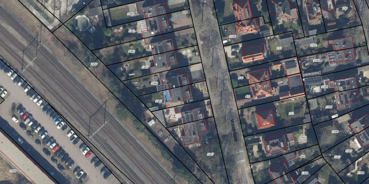 Het perceel waarop Vondellaan 20 staat heeft een oppervlakte van 355 m². Dit is een groot perceel. De perceeloppervlakte wordt geregistreerd door het Kadaster. Gedetailleerde informatie over de maten van dit perceel kunt u vinden in het rapport Kadastrale kaart met maatvoering van Vondellaan 20.