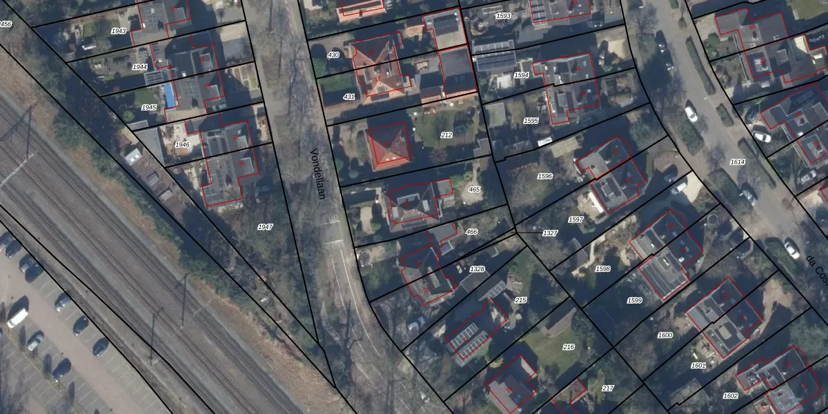Het perceel waarop Vondellaan 21 staat heeft een oppervlakte van 540 m². Dit is een groot perceel. De perceeloppervlakte wordt geregistreerd door het Kadaster. Gedetailleerde informatie over de maten van dit perceel kunt u vinden in het rapport Kadastrale kaart met maatvoering van Vondellaan 21.