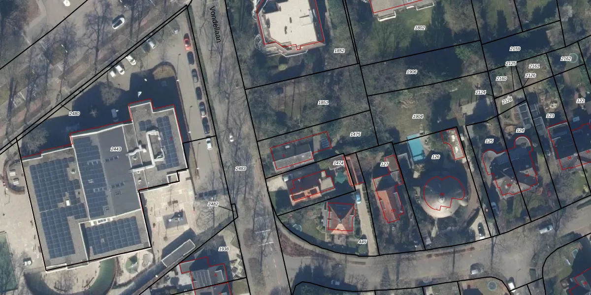 Het perceel waarop Vondellaan 3 staat heeft een oppervlakte van 500 m². Dit is een groot perceel. De perceeloppervlakte wordt geregistreerd door het Kadaster. Gedetailleerde informatie over de maten van dit perceel kunt u vinden in het rapport Kadastrale kaart met maatvoering van Vondellaan 3.