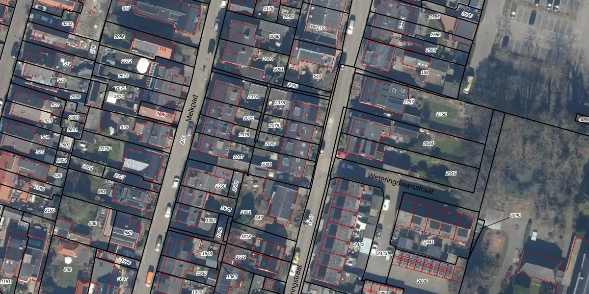 Gebruik de zoekbalk of klik op een perceel voor informatie over de adressen binnen dit perceel.
