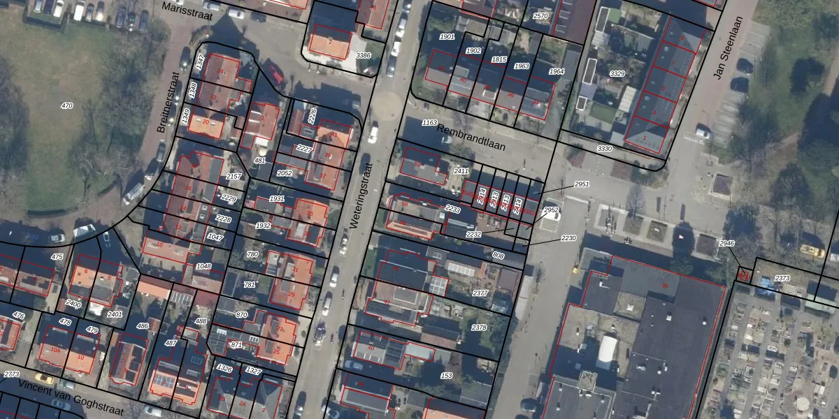 Het perceel waarop Weteringstraat 50 staat heeft een oppervlakte van 229 m². Dit is een middelgroot perceel. De perceeloppervlakte wordt geregistreerd door het Kadaster. Gedetailleerde informatie over de maten van dit perceel kunt u vinden in het rapport Kadastrale kaart met maatvoering van Weteringstraat 50.