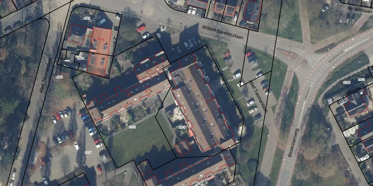Het perceel waarop Willem Barentszlaan 82 staat heeft een oppervlakte van 1930 m². Dit is een zeer groot perceel. De perceeloppervlakte wordt geregistreerd door het Kadaster. Gedetailleerde informatie over de maten van dit perceel kunt u vinden in het rapport Kadastrale kaart met maatvoering van Willem Barentszlaan 82.